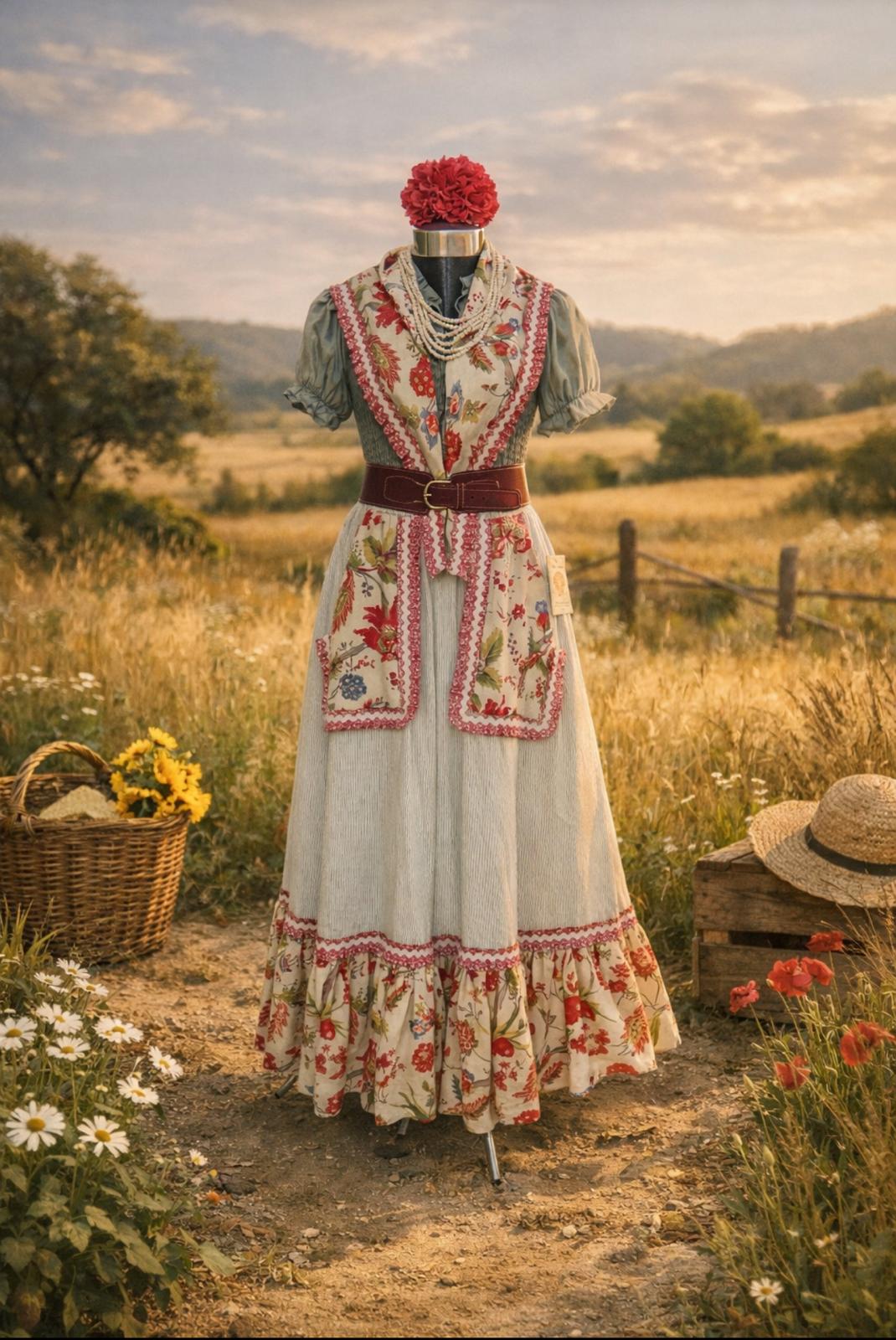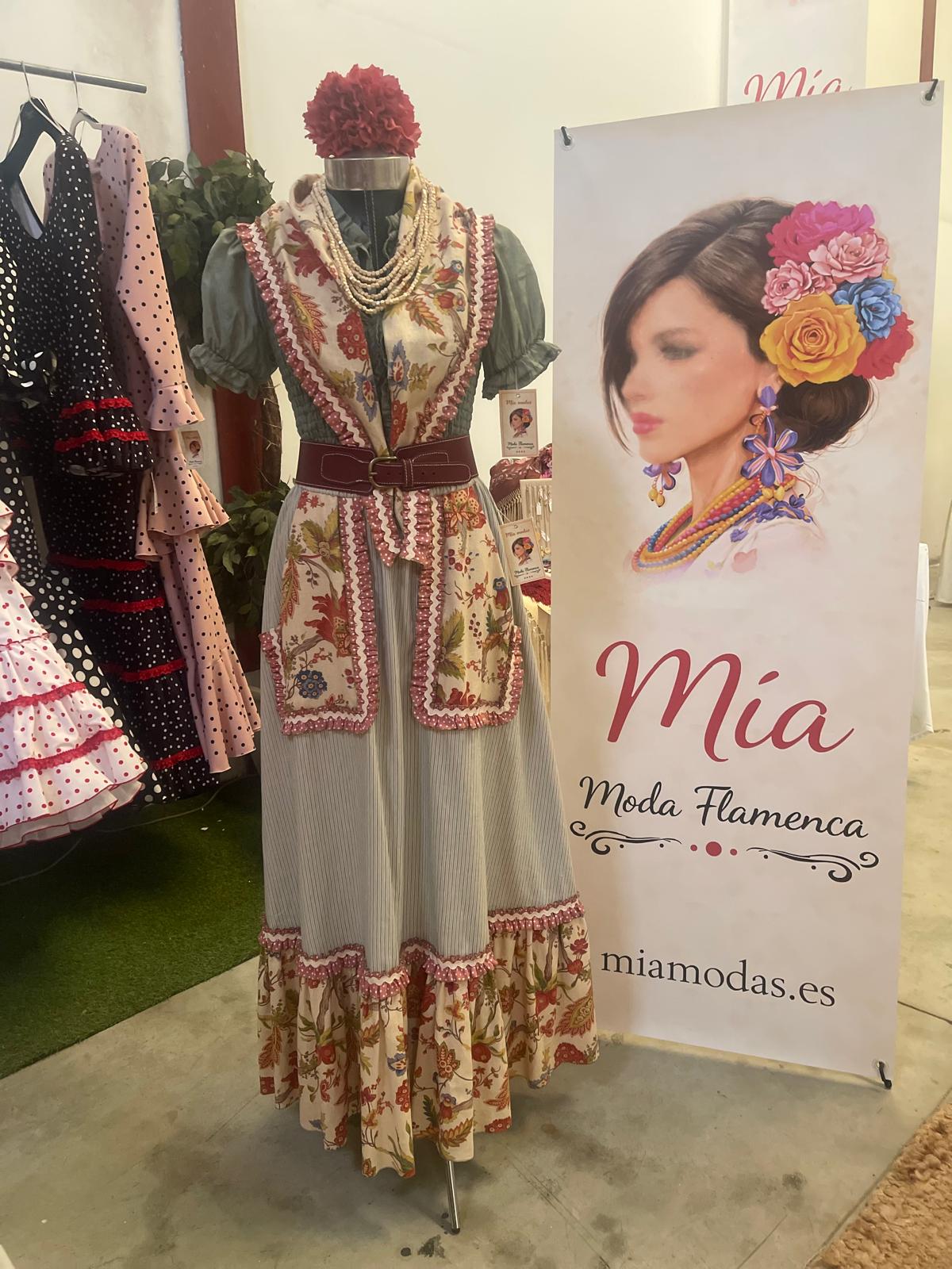 Una falda rociera que enamora a primera vista.Confeccionada en una rayita verde muy delicada,aporta ese aire fresco tan caracteristico del estilo campero.