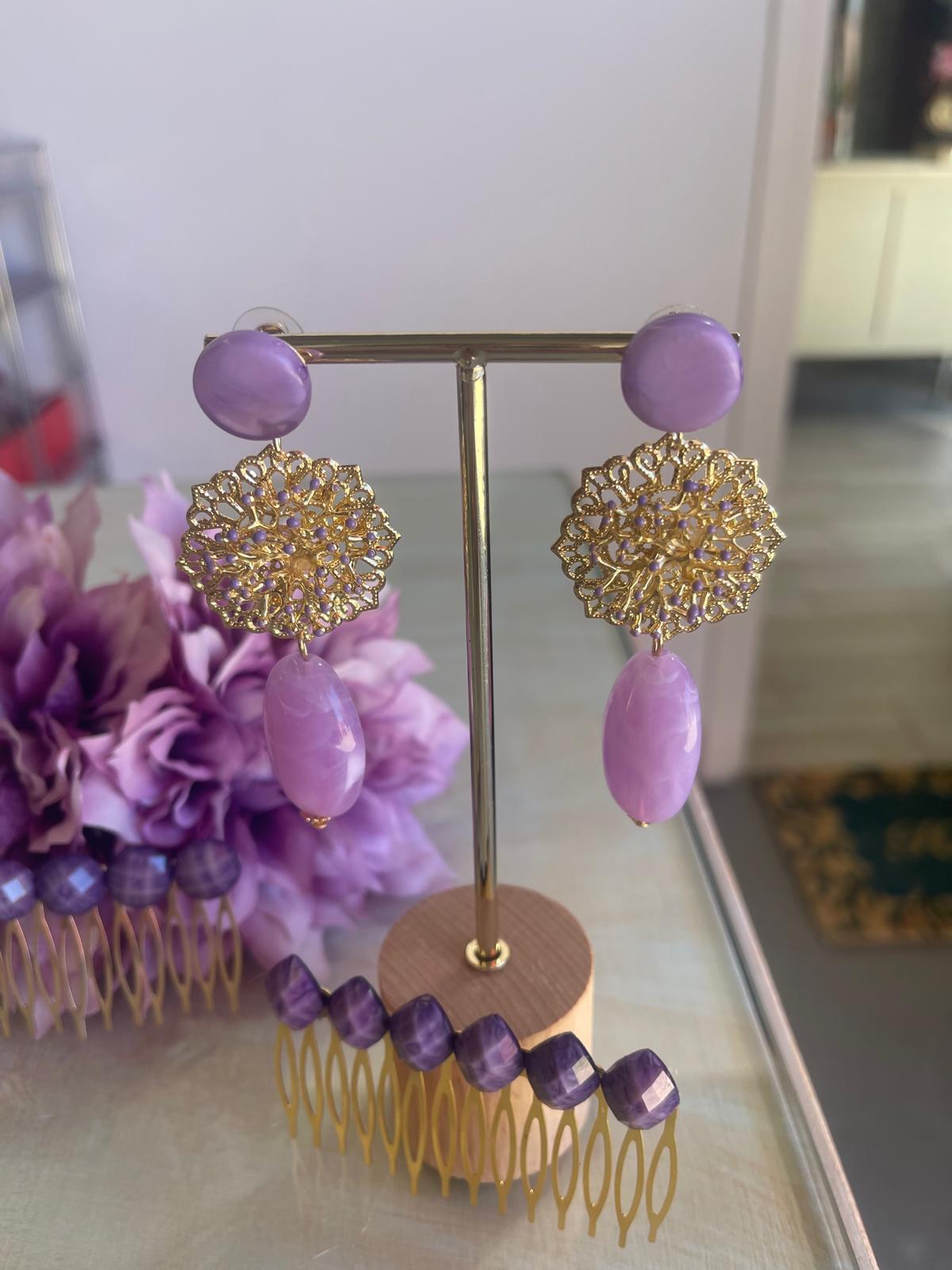 PENDIENTES +2 FLORES +2 PEINAS MEDIANAS TAMAÑO APROXIMADO 6CM. + 1 PEINA GRANDE TAMAÑO APROXIMADO 12CM. EN RESINA EFECTO PIEDRA