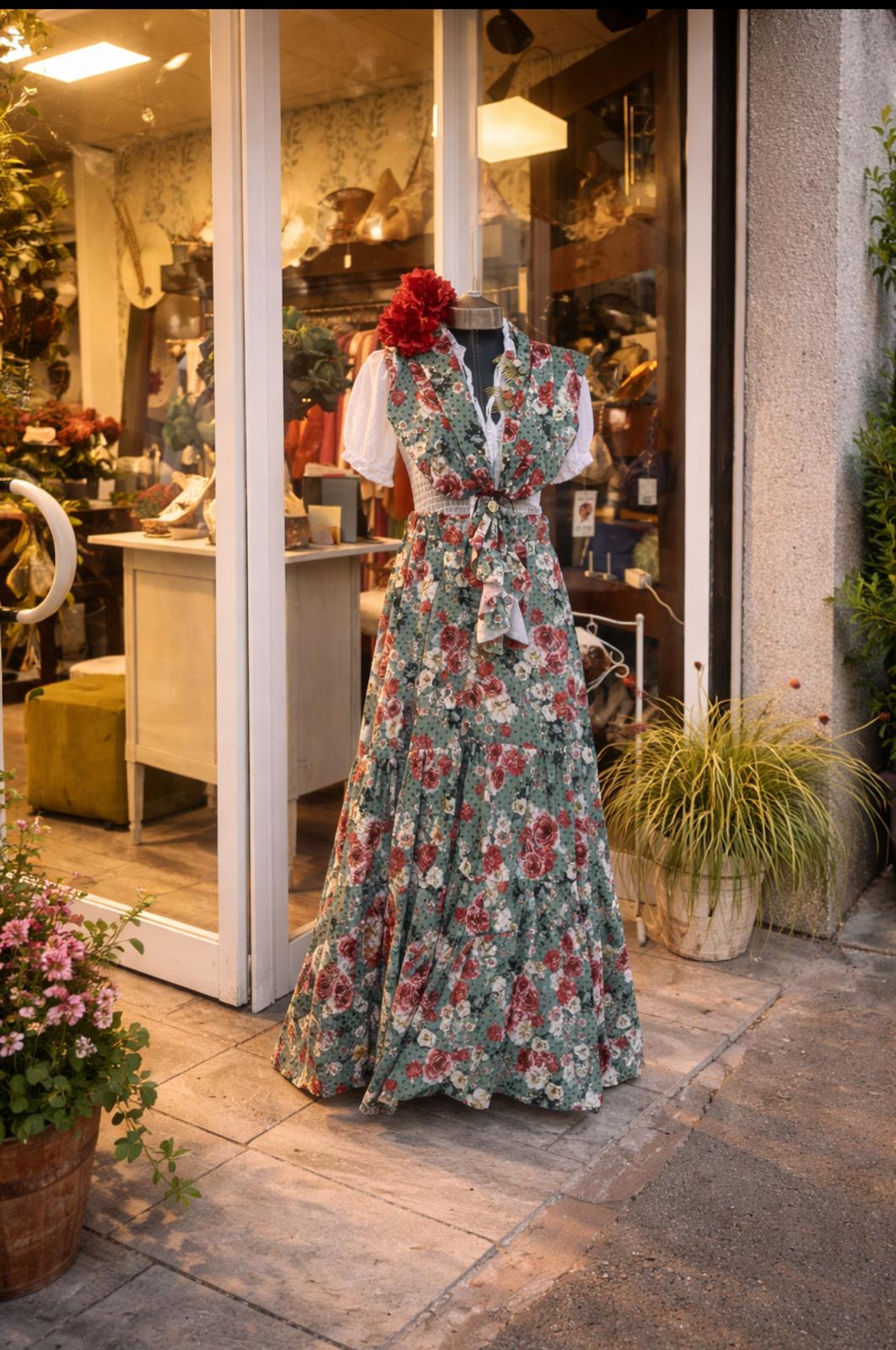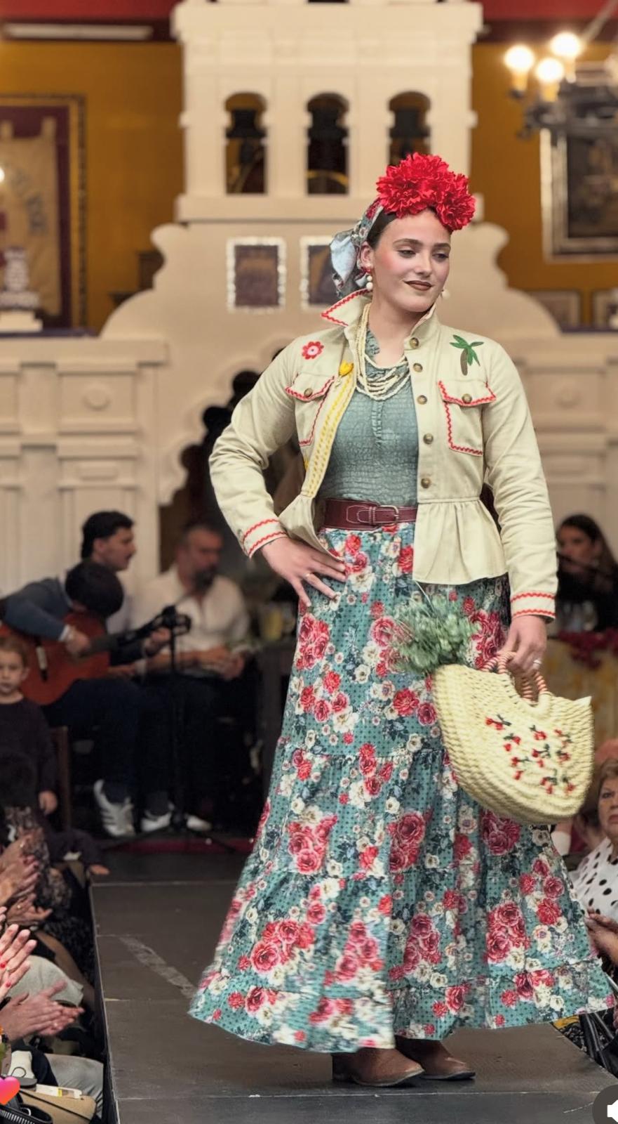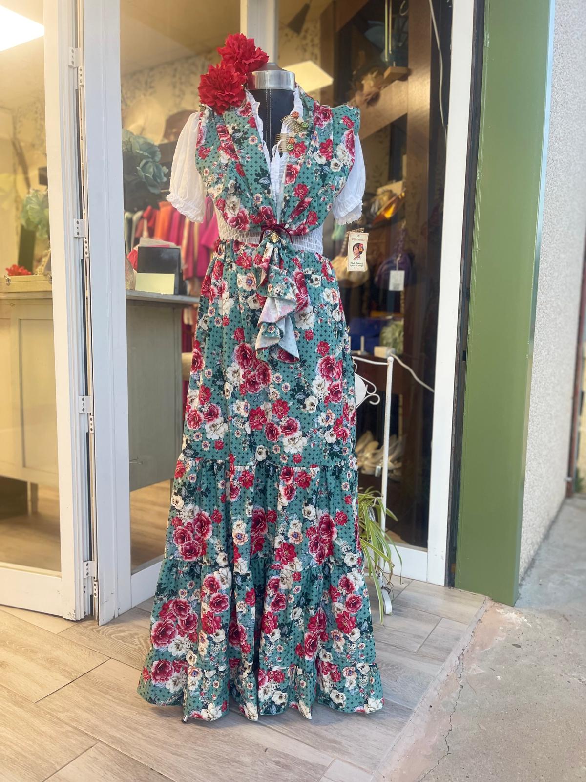 Tejido muy fresco y con un estampado primaveral y comodisimo para esas romerias y Rocio