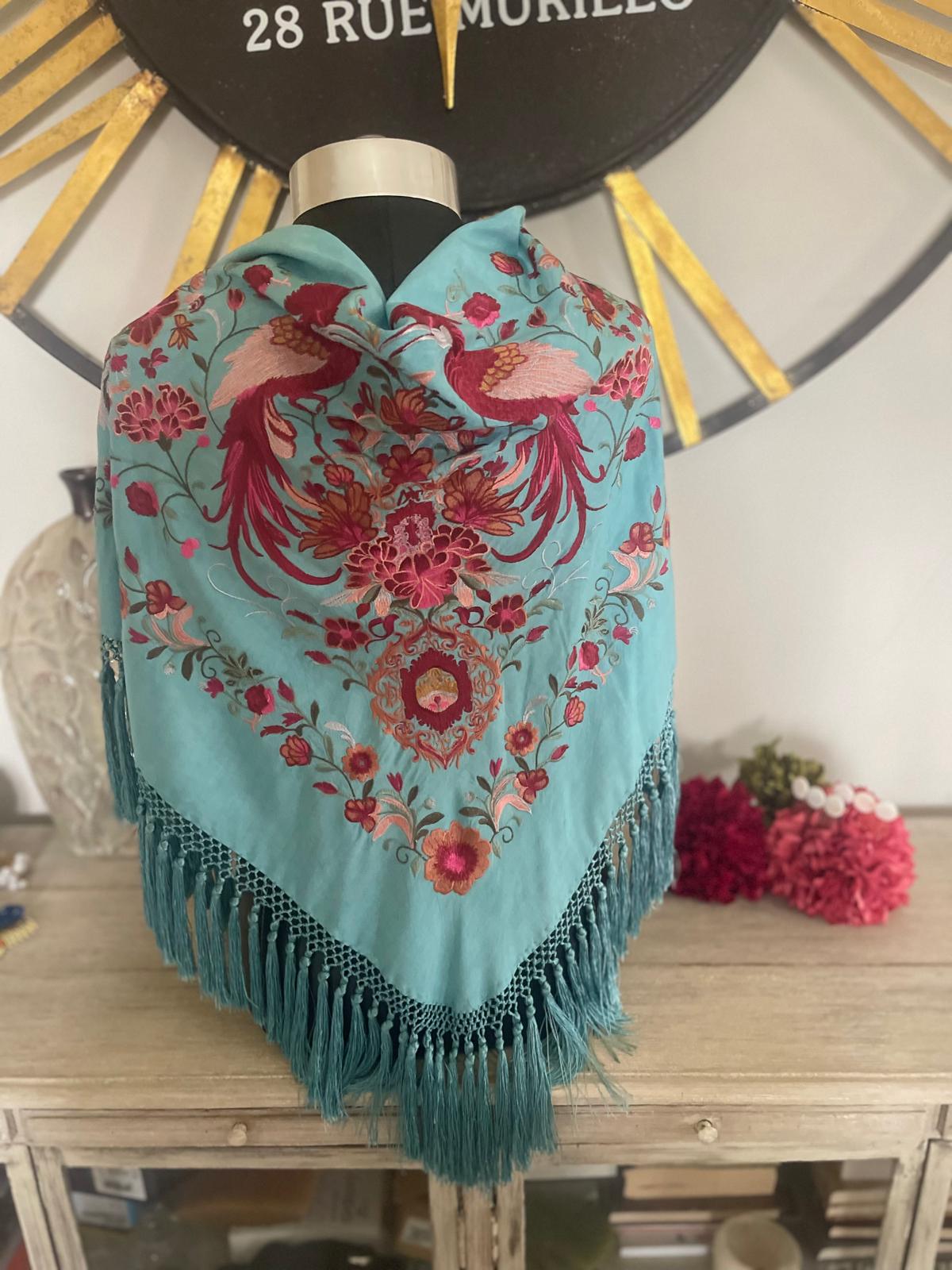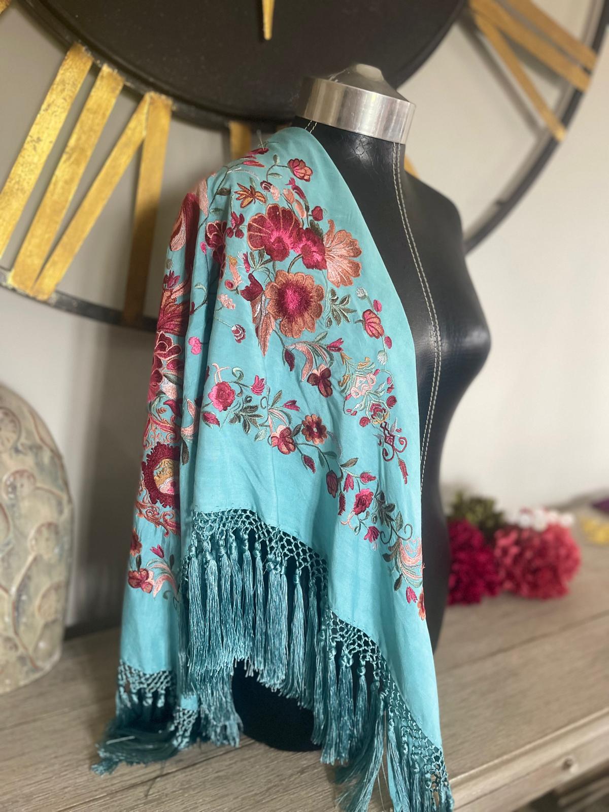 Manton tejido en seda , enflecado a mano