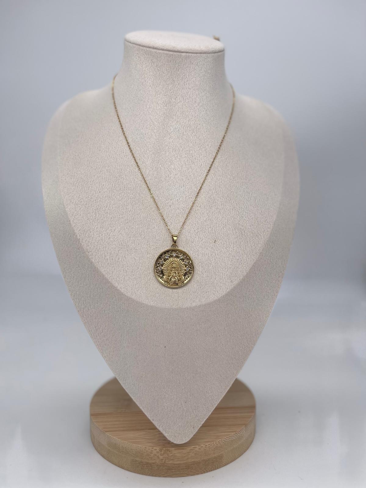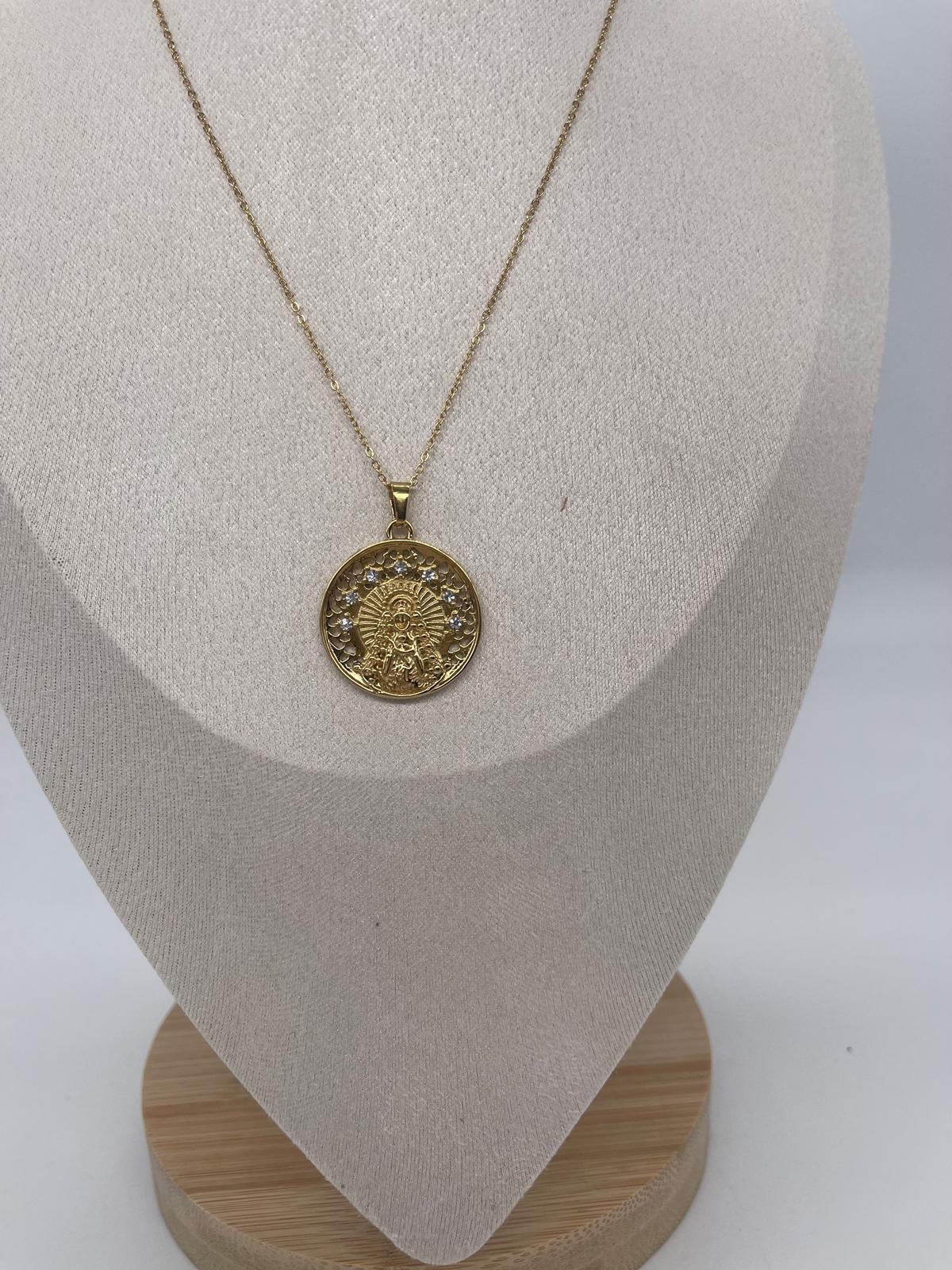 Cadena acero color oro con motivo estrella con circonitas y perla.