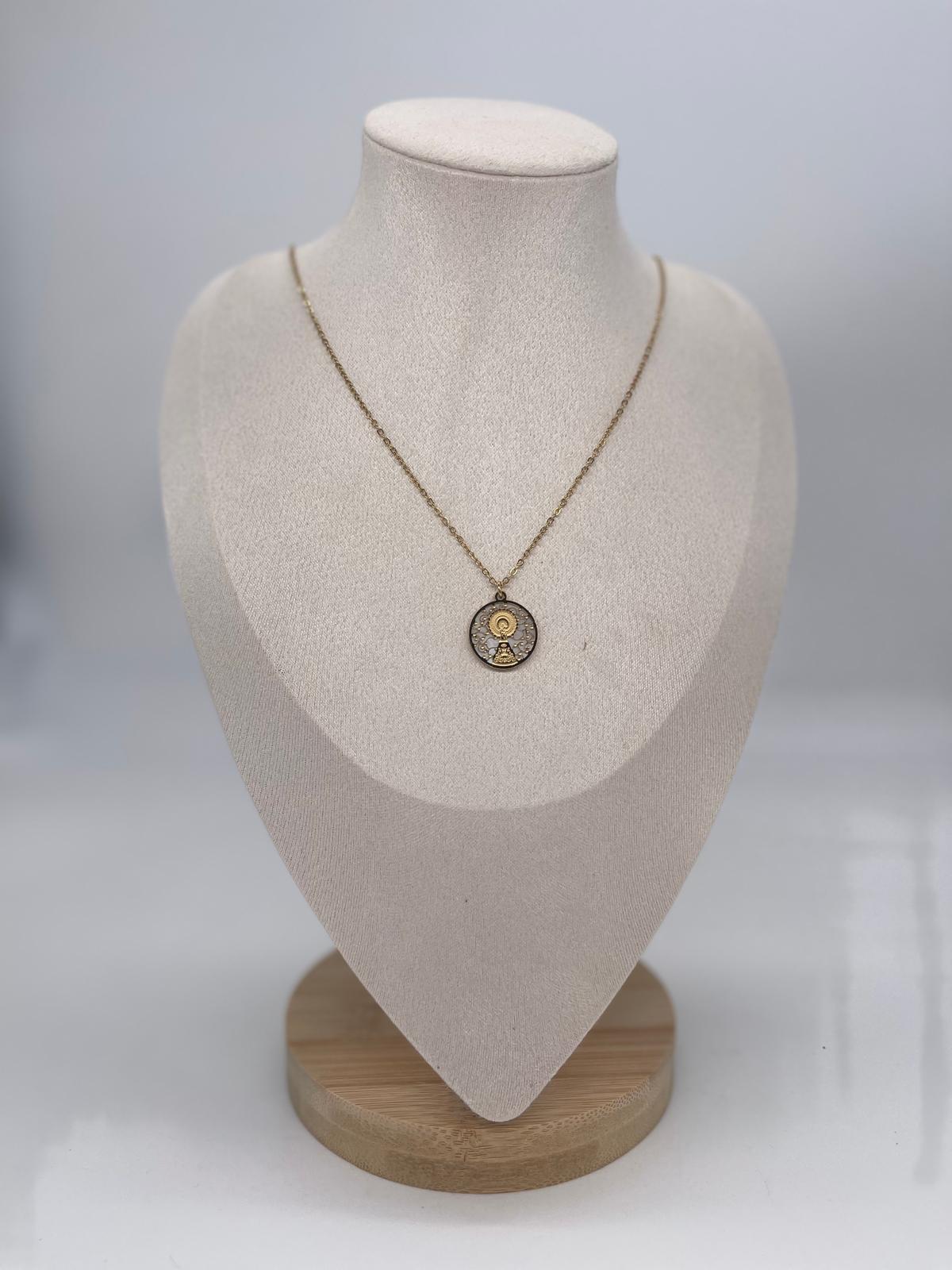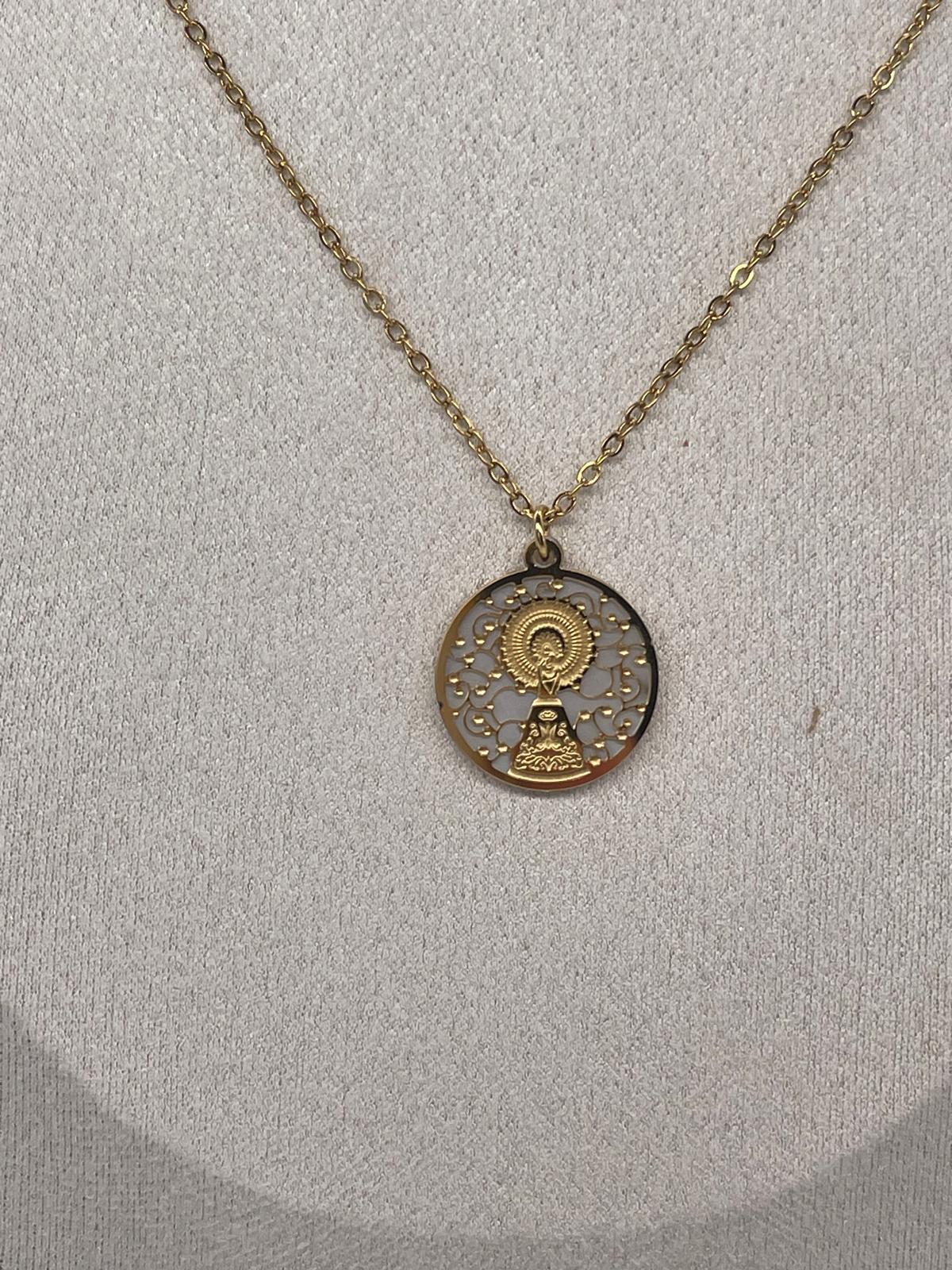 Medalla dorada y nácar en acero con imagen del Rocio
